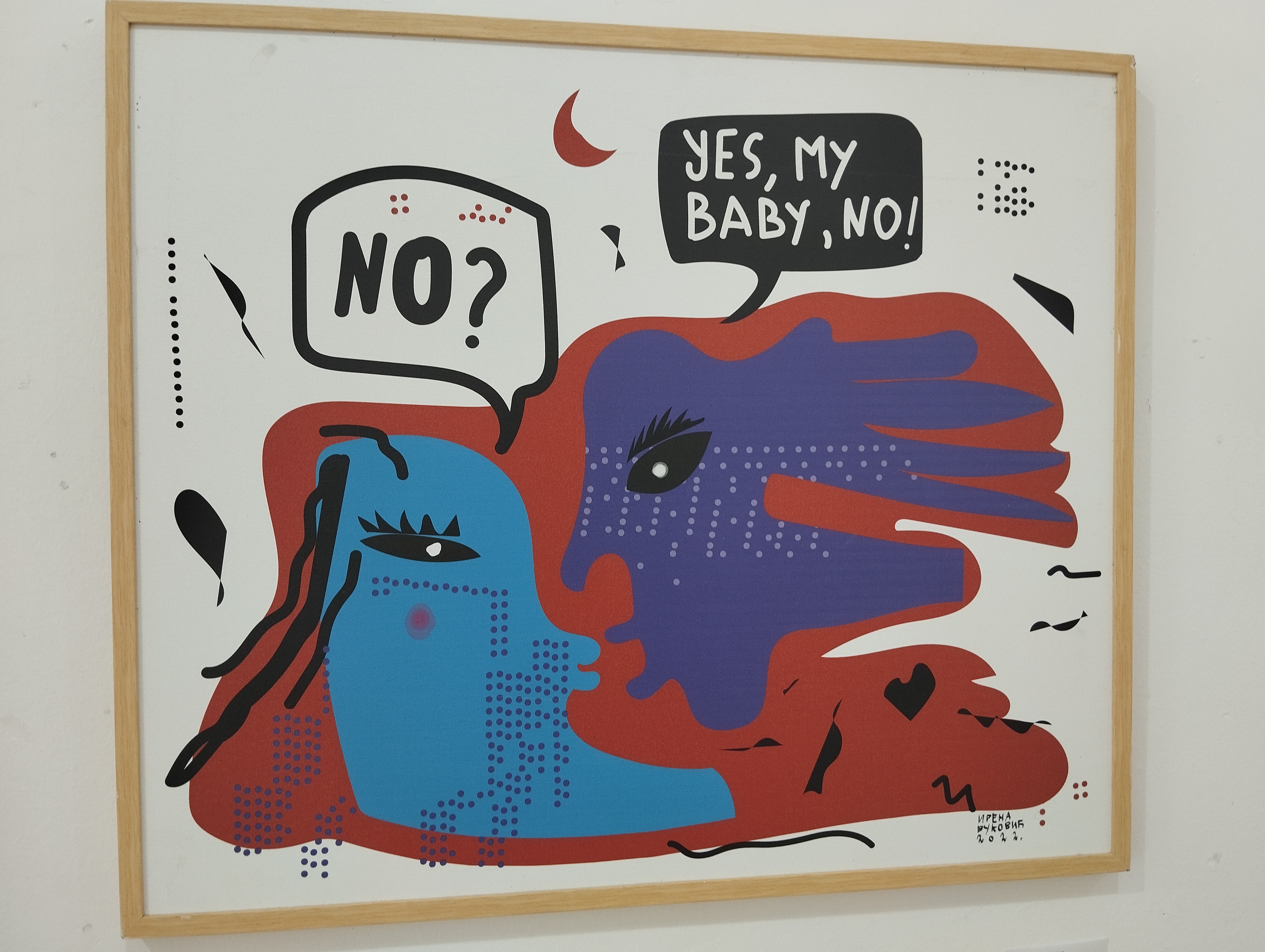 Ova izložba obuhvata novi serijal radova objedinjenih nazivom „Riječ i(li) slika – etika i(li) estetika“. Premisa za likovno određenje u okviru kog trenutno istražuje ima zamajac u nekim od prethodnih stvaralačkih ciklusa (Zbližavanja i Smrt crvenbana). Кroz proces nastajanja tih vizuelnih ideja umetnica je definisala konstrukte tema koje za nju predstavljaju zanimljiv stvaralački resurs za dalje, kontinuirano istraživanje i promišljanje upravo onog modela likovnosti koji joj omogućava povećanje nivoa komunikativnosti djela, prevashodno kroz diskurs (samo)dijaloga na platnima i sa platana. Instrumente (samo)razumijevanja i (de)konstrukcije (samo)zadate problematike pronalazi upravo u odnosu uočenog (slike) i izrečenog (riječi), ili, drugačije rečeno između estetičke dimenzije slike i etičke dimenzije riječi. Кorespondirajući preko komično ili, bolje reći, groteskno provokativnih slika i dijaloga vođenih na podlogama od naizgled šematizovanih ambijentalnih prizora, pokreće pitanja skopčana sa globalnim simptomima savremenog društva – koristeći se porukama čiji smisao pronalazi katkad u površnim floskulama svakodnevice, katkad i u literarnim odjecima narodne književnosti.