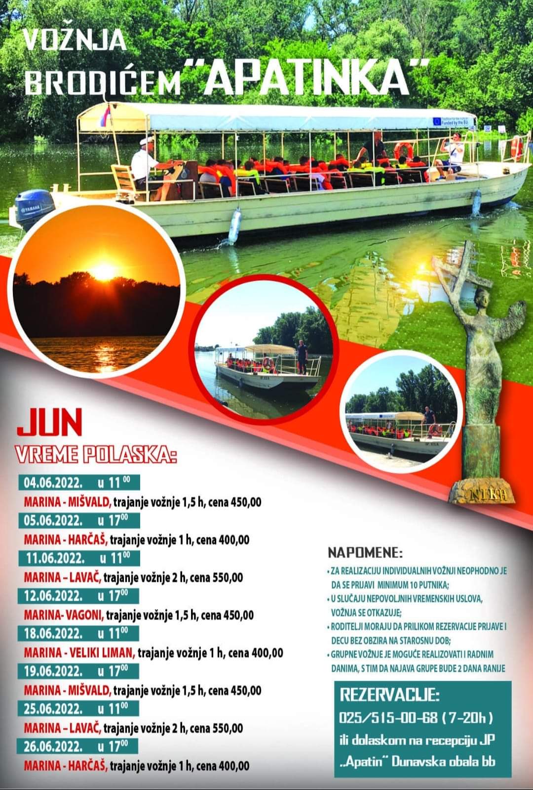 RASPORED VOŽNjI brodićem Apatinka za jun mesec