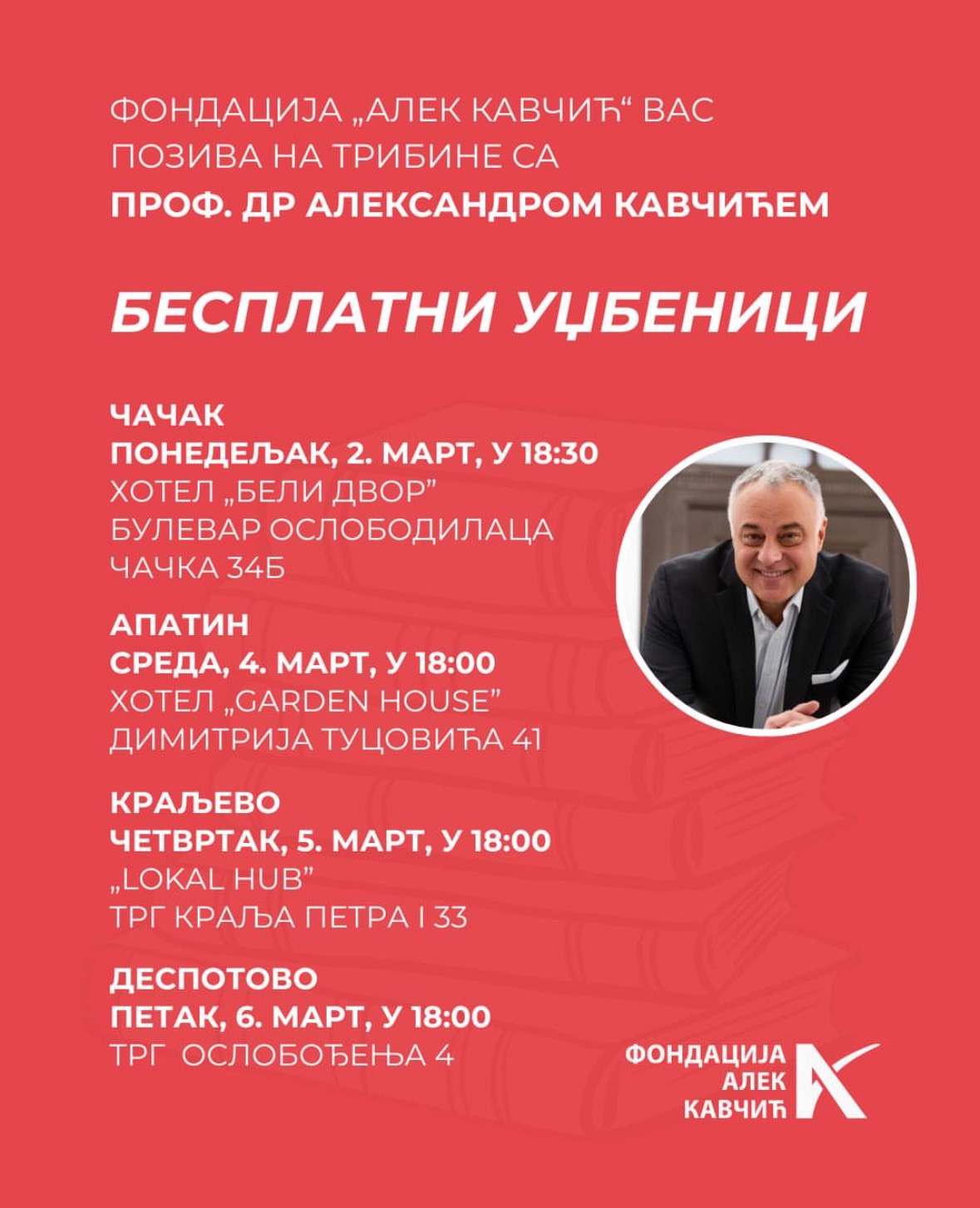 “Saznajte direktno od profesora Kavčića kako funkcioniše sistem besplatnih udžbenika i na koji način roditelji i nastavnici mogu da se priključe misiji fondacije”, poručuju organizatori.