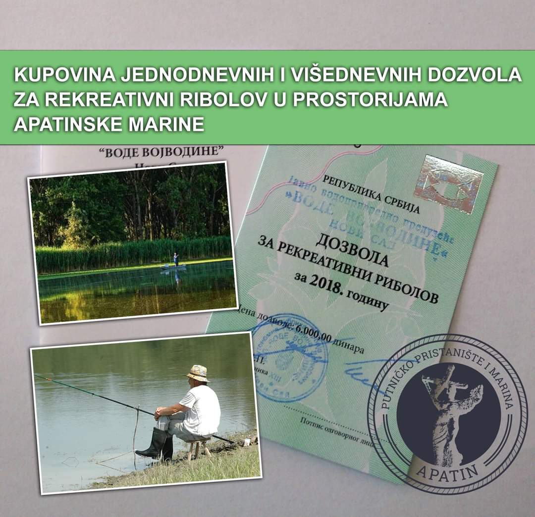 Od 1.juna u prostorijama JP "Putničko pristanište i Marina Apatin", u saradnji sa JP "Vojvodinašume" moguće je obaviti kupovinu jednodnevnih i višednevnih ribolovačkih dozvola za ribarsko područje Gornje Podunavlje.