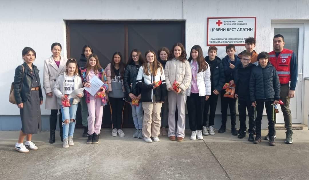 Učenici 6-2 razreda Osnovne škole “Žarko Zrenjanin”, u okviru projekta “Dani dobrih dela”, sa svojim razrednim starešinom Jelenom Gnjatović, na času predviđenom za slobodne aktivnosti, posetili su organizaciju Crvenog krsta Apatin.