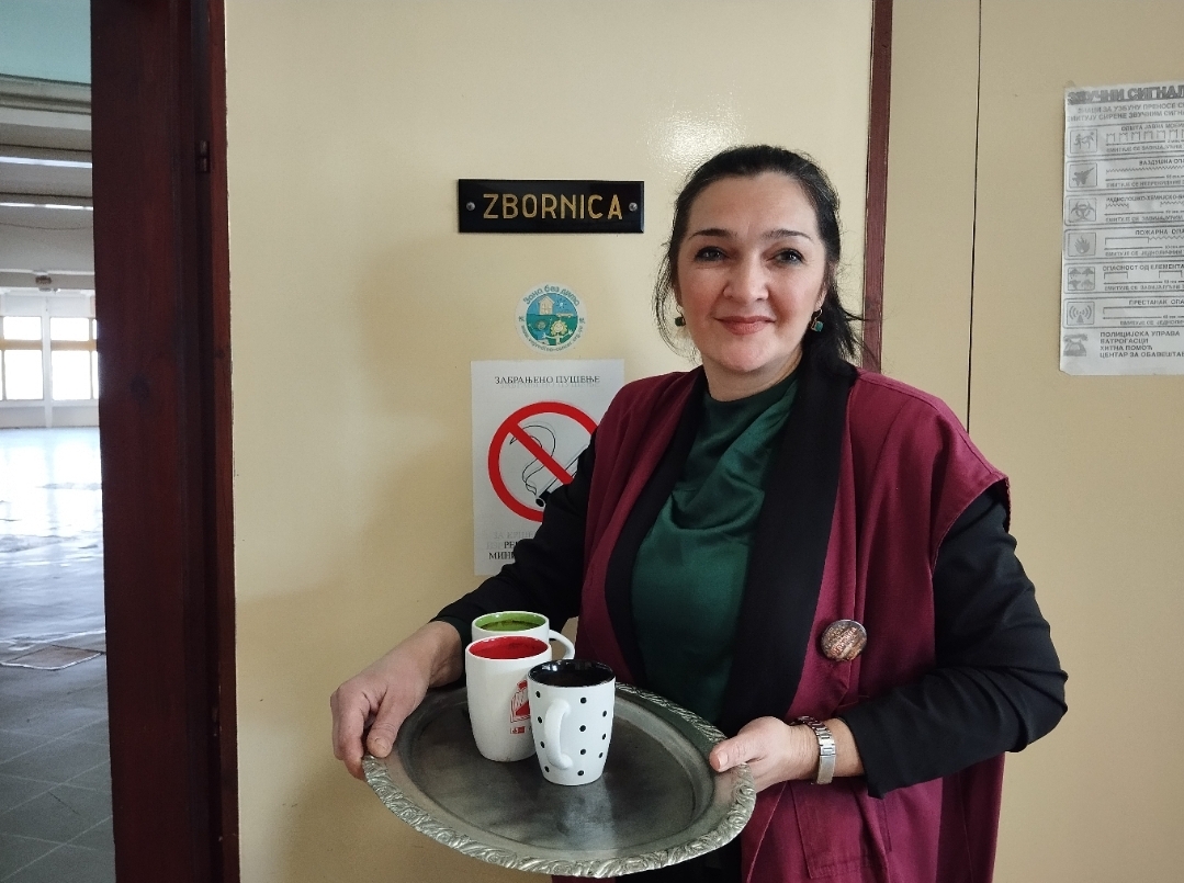 Sa prosvetnim radnicima naša sagovornica ima jako lep i topao odnos. Svi za nju imaju samo reči hvale. Uvek ljubazna, odmerena, prijatna, trudi se sve da ispoštuje. Tokom svog rada u školi promenila su se tri direktora, ali ona je i dalje je tu gde jeste, na sopstveno, ali i na zadovoljstvo svih zaposlenih u školi. Kaže da je jako zavolela svoj posao i da uživa u njemu.