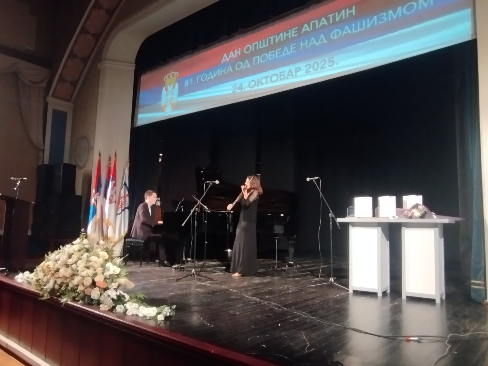 U okviru Svečane akademije povodom Dana opštine Apatin, nastupili su ŽPG “Etna” i PG “Krsnice”, a takođe je održan i koncert kamernog sastava “Le duo”. Ovaj sastav osnovan je 2023. godine i čine ga diplomirani muzičari - Ljubica Damčević (violina, mecosopran) i Nikola Vidojević (klavir). U kratkom periodu, ostvarili su brojne nastupe u Srbiji i inostranstvu, a posebnu pažnju posvećuju savremenoj muzici i domaćim kompozitorima. Njihovi programi kombinuju klasičnu muziku sa savremenim pristupima, tragajući za novim zvučnim mogućnostima.