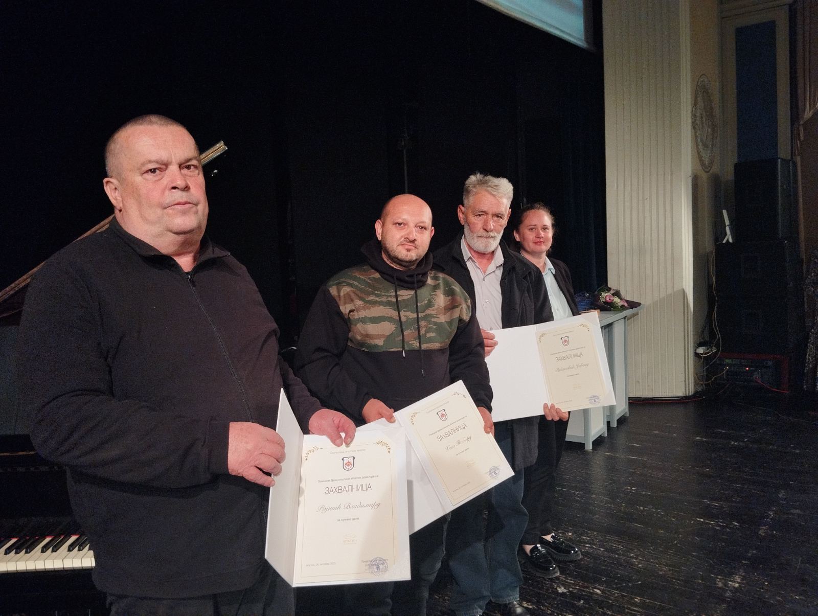Ove godine, pored “Oktobarskih nagrada”, opština Apatin dodelila je i tri zahvalnice. Prva je dodeljena na predlog Crvenog krsta Apatin za dugogodišnjeg dobrovoljnog davaoca krvi, Vladimira Rajšića, čoveka koji je dragocenu tečnost dao 101 put, pa je tako svojom humanošću spasao brojne živote.