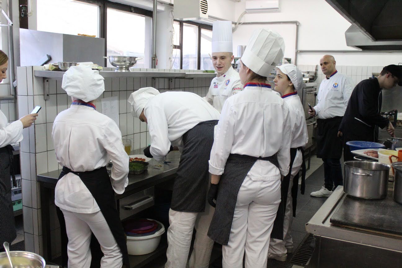 „Za zalogaj dobrodošlice pripremili smo tatar od paprike sa želeom od ukišeljenog luka, za toplo predjelo crni rižoto karbonara sa lignjama i emulzijom od žumanaca, glavno jelo je bio pileći balotin sa pireom od karfiola, a za desert smo imali sunđer od kakaa sa kivijem i espumu od crne čokolade. Učenici su bili fantastični, a atmosfera u kuhinji sjajna. Drago mi je što su bili itekako zainteresovani, postavljali puno pitanja i nadam se da sam uspeo da ih naučim nešto novo i zanimljivo, što će ubuduće primenjivati u svojim kuhinjama“, rekao je Stefan.